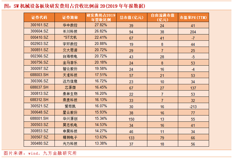 以Wind中SW机械设备板块共421家上市企业为样本,2018年与2019年合计营业收入分别为1.12万亿元与1.28万亿元,研发费用支出分别为433亿元与573亿元,占当期营业收入比重为3.85%与4.46%。加计扣除比例从75%上升至100%后,若均以15%所得税率计算,板块合计利润将分别上升16.24亿元与21.48亿元,占当期归母净利润比重分别为4.27%与4.49%。