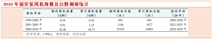 根据水规院的统计数据,1989年至2010年期间,风电装机共有34,483台风机。到2020年底,运行年限超过10年的风电机组约26.5GW。