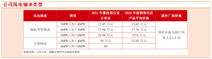公司2022年1月15日发布可转债募资15亿元投向齿轮箱轴承及精密零部件等项目,向齿轮箱轴承、齿轮箱零部件进军,齿轮箱轴承难度大,可替代性低,有利于带动业绩。