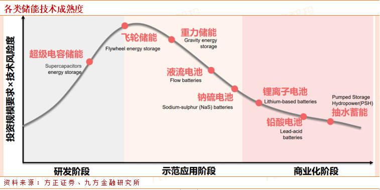 按照储能的原理,可以分为物理储能、电化学储能、电磁储能等。物理储能包括抽水蓄能、压缩空气、飞轮储能、储氢等。电化学储能包括钠硫电池、液流电池、锂离子电池等。电磁储能包括超级电容储能、超导储能等。