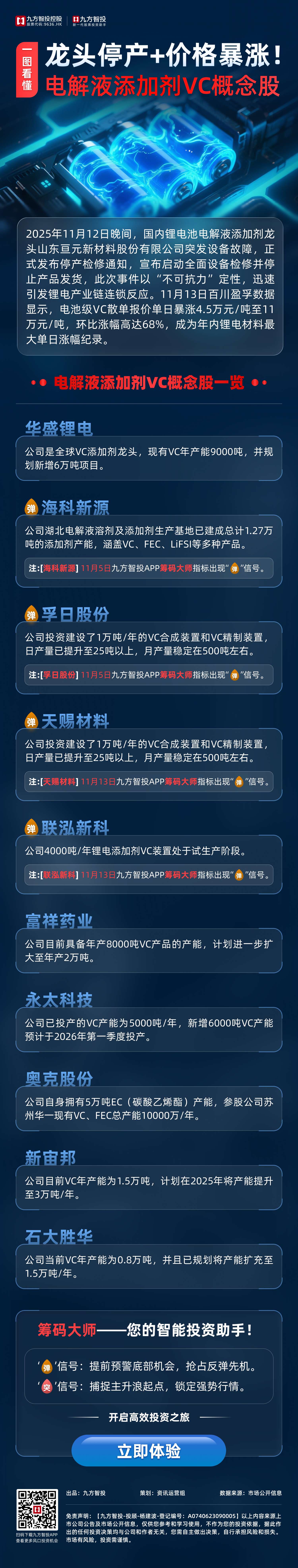 龙头停产+价格暴涨!一图看懂电解液添加剂VC概念股