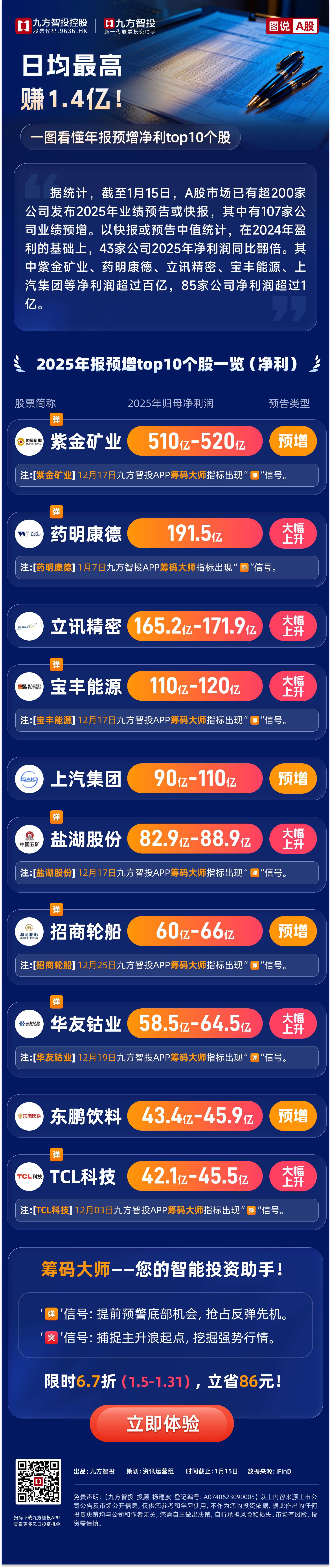 日均最高赚1.4亿!一图看懂年报预增净利top10个股