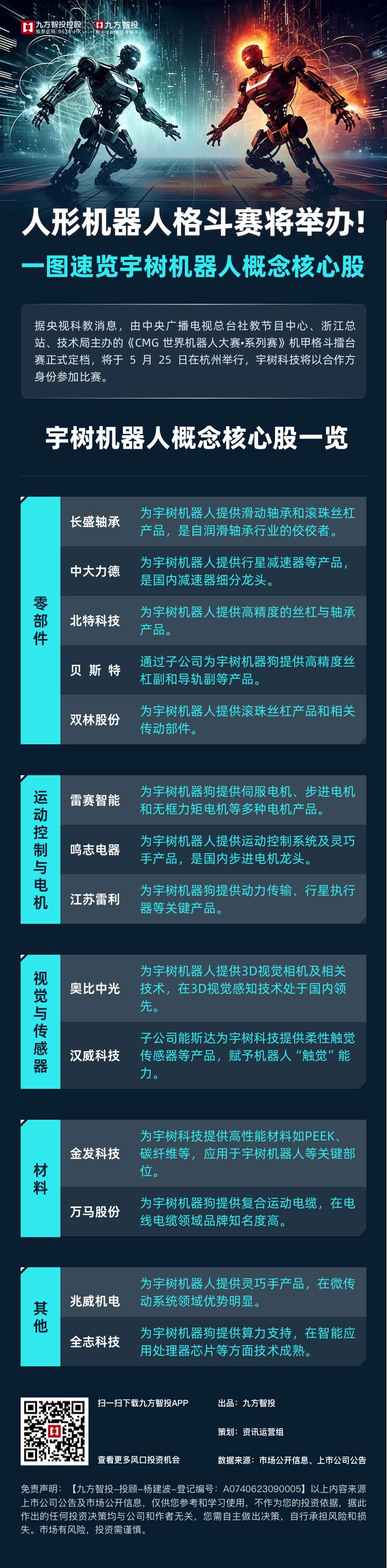 机器人格斗赛将举办!一图速览宇树机器人核心股