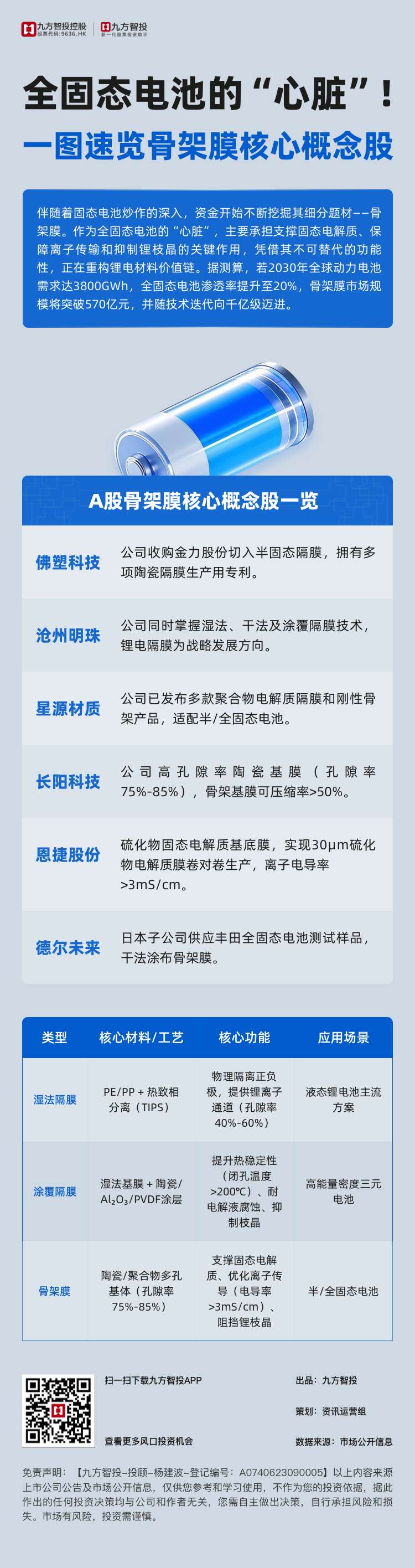 固态电池的“心脏”!一图速览骨架膜核心概念股